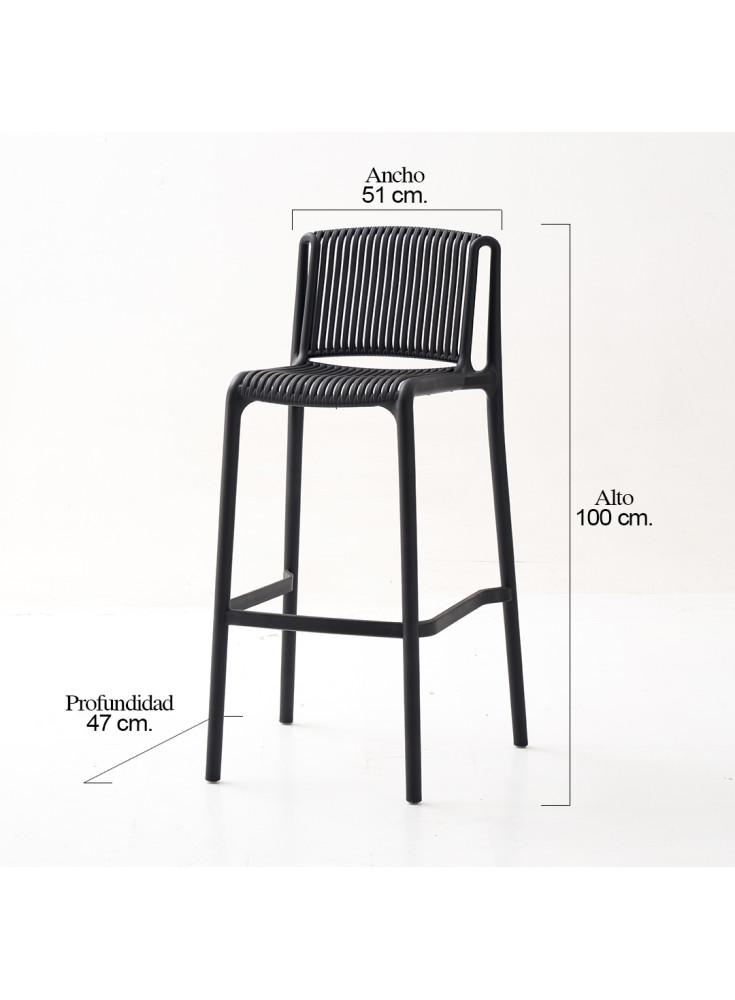 Ancho 51cm, Profundidad 46,5, Altura Asiento 74cm, Alto total 100cm